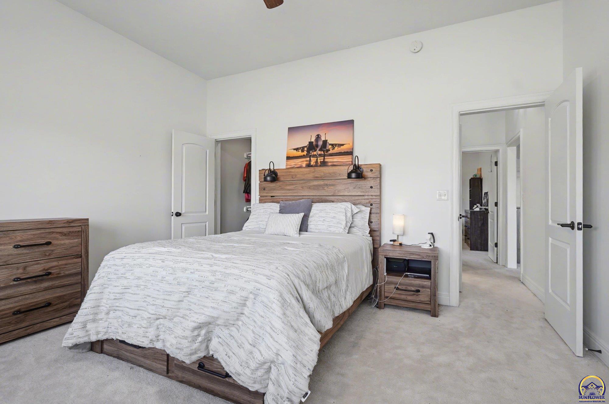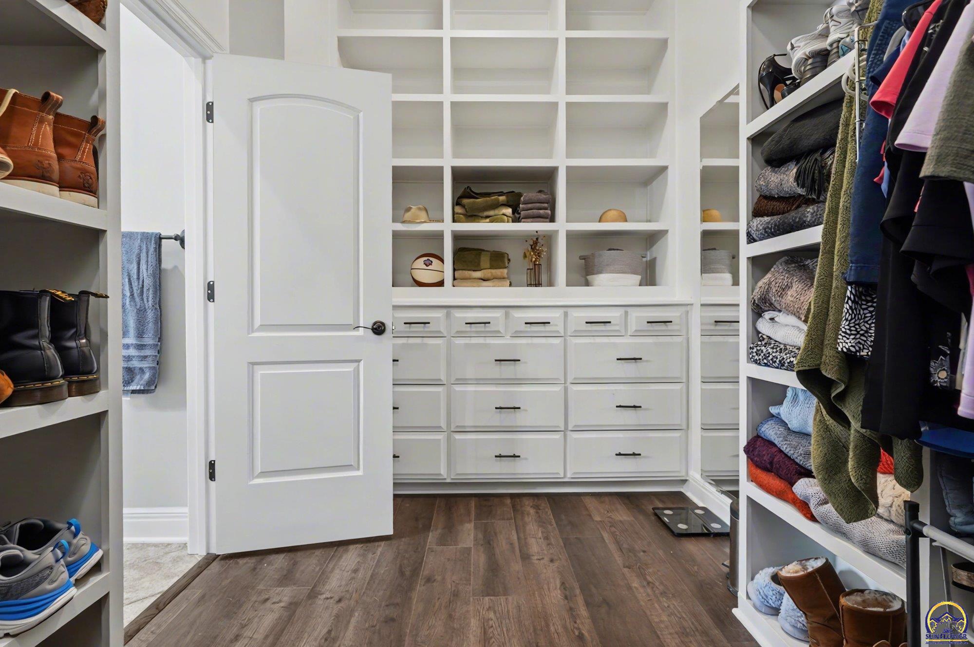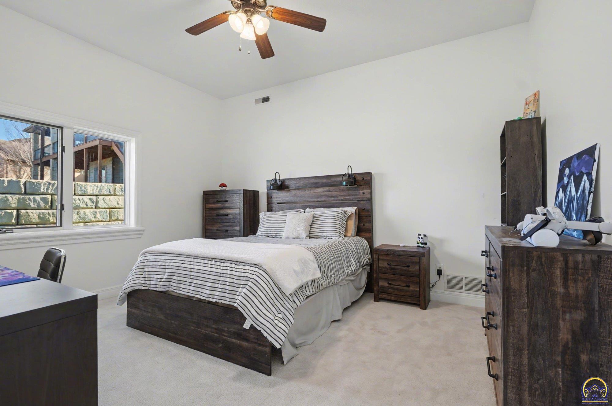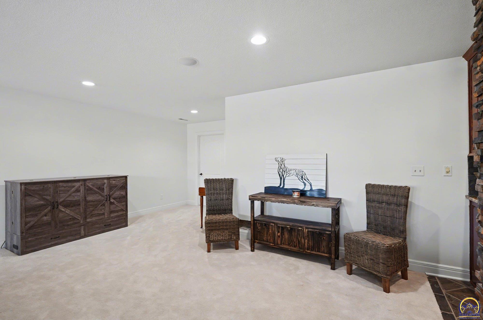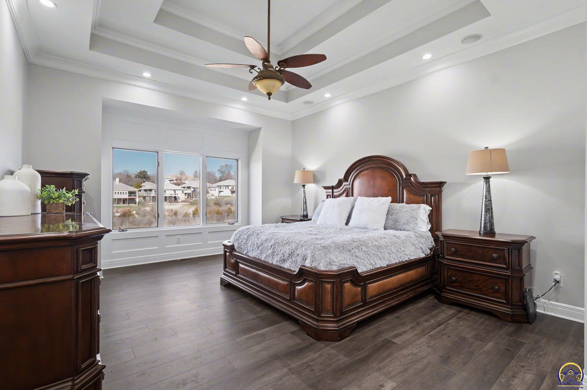 Unique opportunity to own an expertly crafted luxury home located in a quiet neighborhood. Soaring ceilings, high end finishes, 1,380 sq ft of unfinished storage with natural light and windows everywhere. Major expense updating trim & cabinet paint, double HVACs, flooring, lighting, etc. Kitchen has double wall ovens, gas cooktop, a large kitchen island next to a screened in deck overlooking all of the land going down to the lake that the neighbor owns. Formal dining room offers a refined space for entertaining or hosting special holiday gatherings. Guest room on the front and office/3rd bedroom on the back. The full walkout basement has even more living space with 2 additional bedrooms and a large second living area. A wet bar complete with a pantry, refrigerator, dishwasher, and microwave perfect for hosting guests or watching movies. Enjoy colorful Kansas sunsets in your back yard with no HOA to answer to.