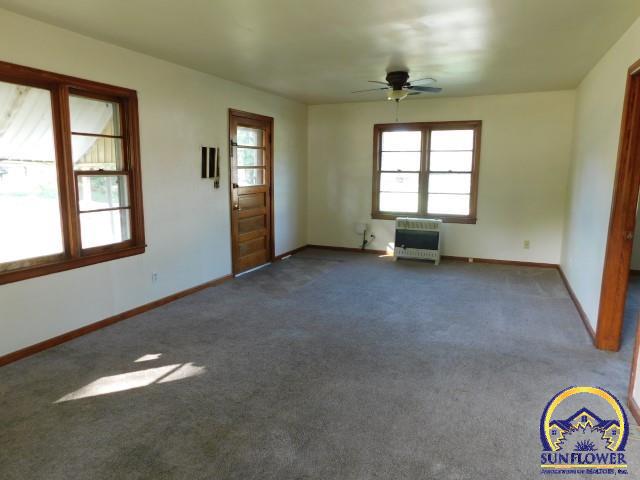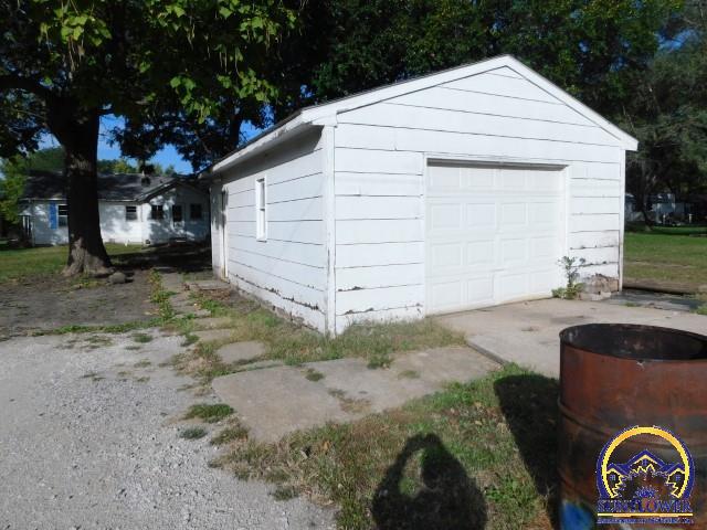 For the price you get a roomy 3 BR home on extra nice corner lot with shade trees makes a great starter home or investment. Doesn't get much better for the money! Large LR/DR with nice carpet. Original hardwood floors in BRs, enclosed back porch w/laundry. Detached garage needs repairs but pretty handy. This home is in a well kept town with grocery store and post office. 20 min. to Holton or 9 mi. to Horton. Jackson Heights Schools.